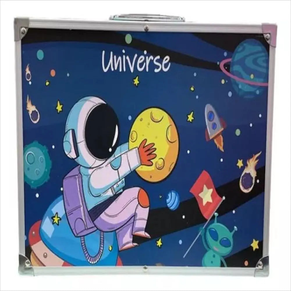El maletín metálico mantiene todo ordenado y protegido. Ideal para llevar al colegio, a casa de los abuelos o incluso de viaje sin que se pierda nada.