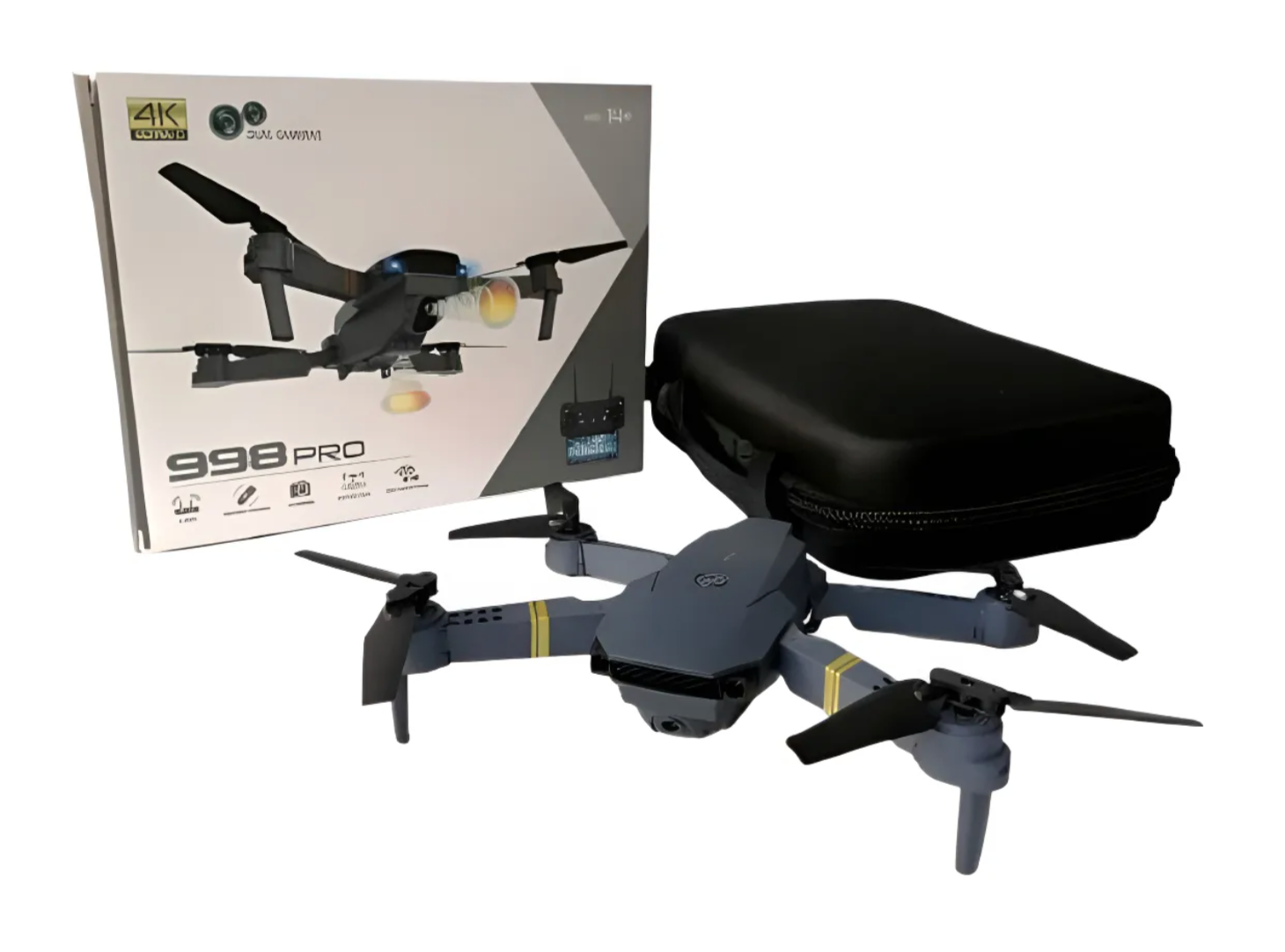 Cámara dual frontal e inferior para capturar diferentes ángulos de vuelo. Resolución de video hasta 4K (según configuración del dispositivo). Conectividad Wi-Fi 2.4 GHz para transmisión en tiempo real (FPV). Control mediante control remoto y también desde smartphone. Funciones inteligentes como retención de altitud, modo sin cabeza y giros 360°. Sistema de giroscopio de 6 ejes que mejora la estabilidad en el aire. Diseño plegable, ligero y portátil, fácil de transportar. Uso recomendado para principiantes y vuelo recreativo. Tiempo de vuelo aproximado de 8 a 10 minutos por batería. Sistema de carga USB para mayor practicidad.