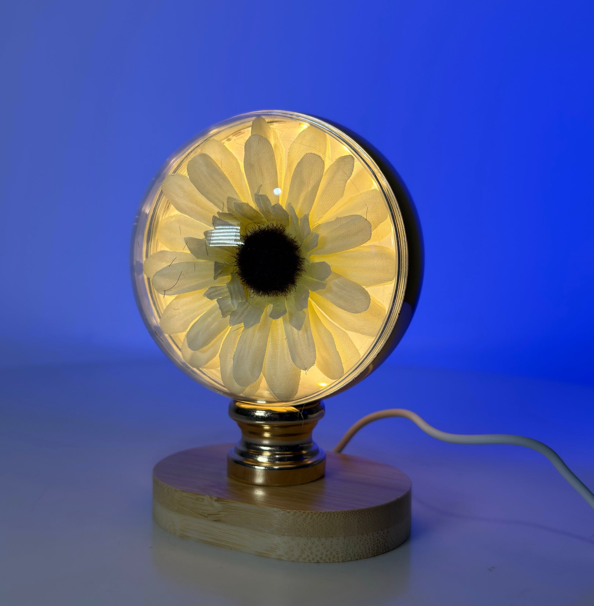 ✔️ 1 lámpara artesanal Luz Eterna con margaritas reales ✔️ Base de madera con iluminación LED integrada ✔️ Cable USB para conexión inmediata ✔️ Empaque listo para regalar, ideal para sorprender desde el primer momento